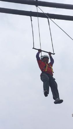 這次拓展訓練給我感觸最深的項目是“高空單桿”,這是個挑戰(zhàn)自我的訓練項目,一開始看到單桿懸掛在10多米的高空時,我的心就直打抖,特別是看到第一個上去的小梁爬到桿頂時的那個膽戰(zhàn)心驚的樣子,我也和大家一樣希望她能戰(zhàn)勝自己,大聲地給她鼓勁、加油,當時我就心想,我可能也是這樣子膽小的,當我終于鼓起勇氣爬上桿頂時,我真的就和小梁一樣,再也不敢站直身子,雖然團隊的隊員都給我加油,教練甚至用激將法激我都不管用,我的心還是直砰砰跳,直到腦子一片空白……直至從高空跳下落到地面時,心里一直都很不是滋味,并深刻反省自己怎么就沒有這個膽量呢?雖然明知道所有的設備是安全的,但我就是缺乏信心和勇氣,這是造成挑戰(zhàn)失敗的根本原因。其實,我們平時的工作、生活、學習也是如此,無任做什么,首先要有必勝的信心和戰(zhàn)勝困難的勇氣,同事之間要相互信任,工作才能做好做扎實,公司才能發(fā)展、再創(chuàng)輝煌。生活中,家庭成員之間也要彼此信任,家,才能和諧、興旺。(邱小紅)