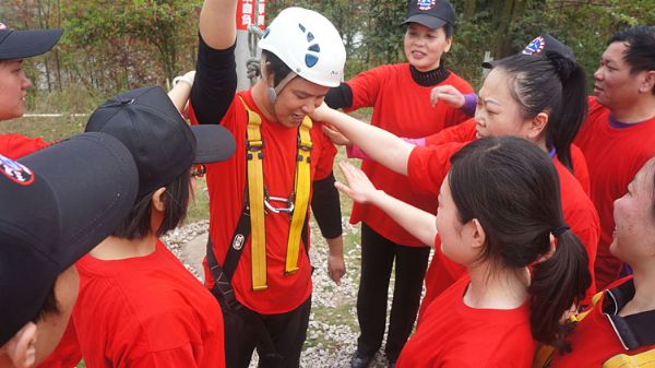 參加人員被隨機分為三支團隊,通過集體討論,確定了各自的隊名、隊長、隊歌和口號。在訓練過程中,有挑戰(zhàn)膽量“空中單杠”項目,有鼓舞信心的“空中斷橋”,有交心通氣的“信任背摔”等項目。尤其是在“有軌列車”“盲人方陣”“摩爾斯密碼”等項目訓練中,大家默契配合、認真分析,最終形成了一個整體和共識,完成了看似不可能完成的任務。每輪項目結(jié)束后,大家在一起相互商討,爭相發(fā)言,分享親身體驗的過程和成功的喜悅,尤其是學會了如何去溝通,如何去克服心里障礙,如何去釋放自己的正能量戰(zhàn)勝困難。