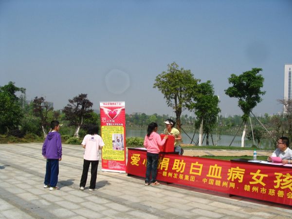(集團(tuán)公司團(tuán)支部在中心城區(qū)設(shè)立流動(dòng)募捐點(diǎn),為患白血病大學(xué)生朱梅開展“奉獻(xiàn)愛心、讓愛傳遞”募捐活動(dòng),組織發(fā)動(dòng)廣大團(tuán)員青年及市民向朱梅同學(xué)伸出援助之手,奉獻(xiàn)愛心。圖為中央生態(tài)公園募捐點(diǎn)。)