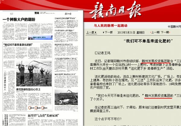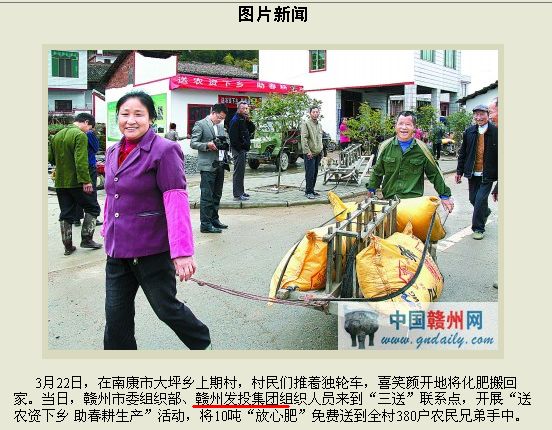 □記者王瑋 近日,記者隨同贛州市委組織部、贛州發展投資集團聯合“三送”工作隊,來到南康市大坪鄉一個邊遠的山村——上期村。考慮到眼下正是春耕備耕的關鍵時期,駐村工作隊當天要在該村開展“送化肥下鄉 助春耕生產”活動。 送化肥活動的地點,選在上期村新建的文化廣場。廣場上,有的村民在健身器械上健身,有的和小孩在嬉戲。見“三送”工作隊運來了化肥,許多村民推著獨輪車、拿著扁擔也來到了廣場上。送化肥活動有條不紊地進行,10噸免費化肥被全村380戶農戶領回了家。 “我們今天可不單是來送化肥的。”贛州發展投資集團的“三送”干部向記者賣了個關子。 在記者的再三追問下,才得知,原來他們還要到村民家里開展發展庭院經濟項目摸底調查工作。 這個點子可不可行? 該村井邊組村民朱祥軍現身說法。他告訴記者,去年在駐村“三送”工作隊的幫助下,他率先在組里發展庭院經濟搞養殖。工作隊免費為他提供的100只雞幼苗全部成活,飼養3個月后出售,賺了近6000元錢。村民朱發楦也說,去年在“三送”干部的幫助下,他也在家搞養殖賺了錢,今年準備把舊房拆掉建新房子了。 上期村黨支部書記朱發洪告訴記者,現在村民們可信任“三送”工作隊了。工作隊來村里后,開展危舊土坯房改造、集中整治村容村貌、村組道路硬化、完善公共基礎設施等工作,使上期村道路更暢通了,環境更整潔了,村里面貌煥然一新。 不過,改變村容村貌只是“三送”工作隊走的第一步。為推進“三送”工作的深入開展,幫助農戶拓寬致富門路,工作隊員們還準備組織有勞動力、有發展條件的農戶,挖掘現有庭院可利用空間,發展庭院種植業和養殖業。爭取通過以點帶面的形式,在上期村推廣庭院經濟的發展模式,開辟一條符合當地實際情況的農民增收和就業的新路子。