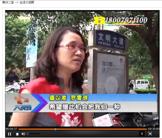 志愿者胥偉莉:我們這邊在做一個公益活動,倡導文明出行,愛護環境這么一個活動,希望從我做起,從點滴做起,共建我們美好的贛州。
