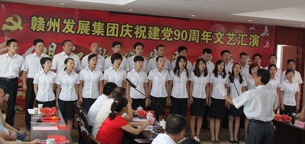 光輝九十年,盛世譜華章,兒女多奮進,頌歌獻給黨。7月8日,贛州發展投資控股集團慶祝建黨九十周年文藝匯演在公司禮堂隆重舉行,公司領導帶領全體員工歡聚一堂,共同慶祝偉大的中國共產黨90周年華誕!晚會以“唱紅歌、頌黨恩、跟黨走”為主題、選取紅色經典曲目,運用獨唱、合唱、配樂詩朗誦等藝術形式,重溫了中國共產黨九十年的光輝歷程,熱情謳歌了新中國建設取得的輝煌成就。