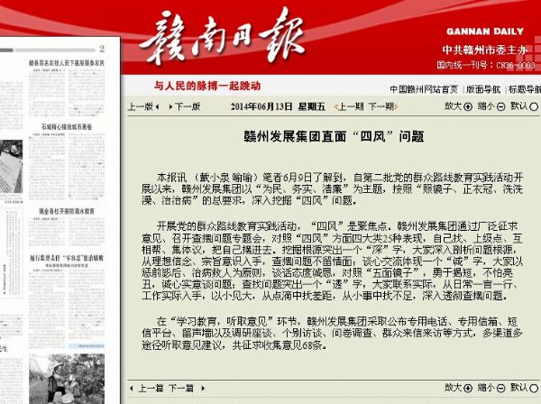 【贛南日報】贛州發展集團直面“四風”問題