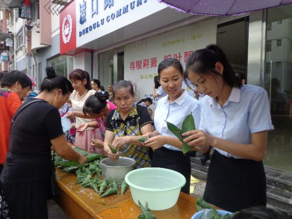 2015年6月19日,贛州發(fā)展集團(tuán)團(tuán)委組織青年志愿者來(lái)到文明單位結(jié)對(duì)幫扶點(diǎn)東外街道渡口路社區(qū)開(kāi)展“迎端午、促和諧”包粽子比賽活動(dòng)。