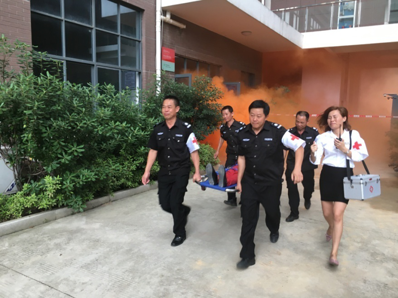 此次演習主要內容包括消防設備安全排查、消防知識培訓、疏散逃生以及緊急救治。為確保演習安全有序進行,演習設置了消防演習總指揮組、通訊聯絡組、應急疏散組、警戒保障組、滅火行動組和救護組六個小組。只聽總指揮一聲令下,警報聲拉響,演習正式開始。在現場調度的正確指引下,每個小組齊心協力,緊密配合,井然有序。參加演習的人員首先報告火情,并及時撥打報警電話;其次切斷電源,阻止其他人員進入火場并及時對大樓進行疏散;然后快速連接水帶,攜帶滅火器和水槍進行滅火示范,同時利用擔架等醫療設備將傷員及時轉移,緊急撤離到安全區域進行救治;最后總指揮組織大家進行了滅火器相關知識和使用方法。