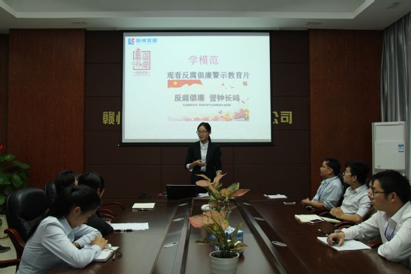 隨后,大家共同觀看了反腐倡廉警示教育片,學習了明朝名臣于謙的廉潔故事,誦讀了梁啟超的《少年中國說》,風控法務部副總監賴秦結合主題分享了自己的工作經驗和感悟,號召大家要廉潔守紀、奮發有為,為公司轉型發展貢獻一份力量。