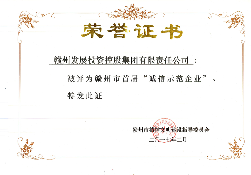 集團榮獲贛州市首屆“誠信示范企業(yè)”榮譽稱號