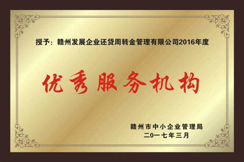 8月22日,贛州市中小企業管理局、贛州市中小微企業服務中心舉辦贛州市中小微企業服務中心理事會第二屆一次大會暨“2016年度優秀服務機構”表彰會。集團旗下贛州發展企業還貸周轉金管理有限公司榮獲“2016年度優秀服務機構”榮譽稱號。