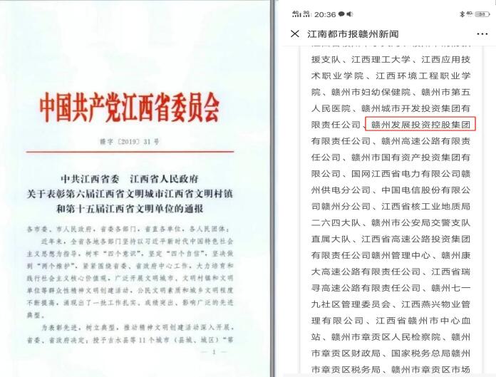近日,贛州發展投資控股集團被中共江西省委、省人民政府授予“第十五屆江西省文明單位”榮譽稱號,該集團連續蟬聯三屆“江西省文明單位”。