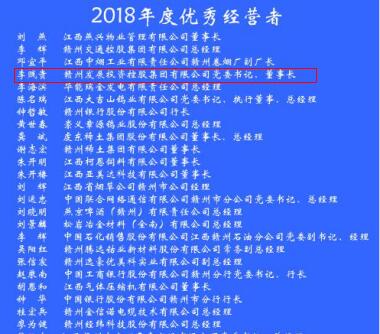 7月23日上午,由贛州市工業和信息化局主辦,贛州市企業聯合會、贛州市企業家協會協辦的年度企業家表彰大會在贛南賓館舉行。集團黨委書記、董事長李賤貴榮獲“2018年度優秀經營者”稱號。