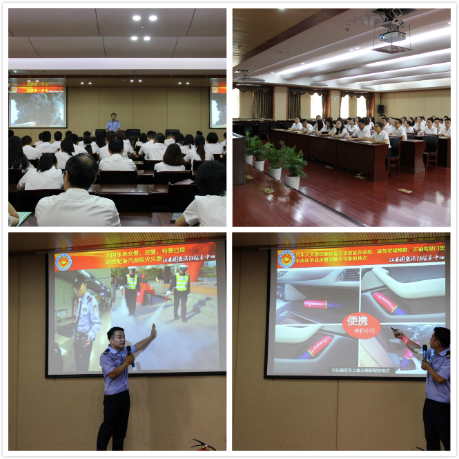 授課教官從發生火災的起因強調提高安全防范意識的重要性,從各類火災慘案強調增強消防安全知識的必要性,并結合近年來各類重特大火災案例,就人員密集場所的火災種類、滅火方法、火災現場自救逃生技能以及各類滅火器材的性能和使用等基礎知識進行了詳細地講解。