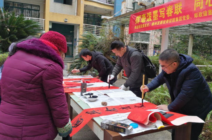 此外,贛州發投集團還組織書法興趣小組成員赴社區揮毫潑墨,現場為社區居民書寫春聯送祝福。居民領到春聯后,眉開眼笑,連連夸贊寫得好,居民們紛紛表示,希望來年還有這樣溫馨實惠的活動。