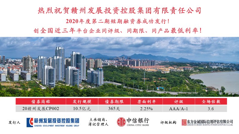 今年以來(lái),集團(tuán)認(rèn)真貫徹落實(shí)有效應(yīng)對(duì)疫情穩(wěn)定經(jīng)濟(jì)增長(zhǎng)“省20條”、“市30條”政策措施,搶抓政策窗口期,按照“一債一策”的原則,明確時(shí)間表和路線圖,扎實(shí)推進(jìn)短融、超短融、基金債、增強(qiáng)型雙創(chuàng)債以及公司債等債券發(fā)行工作,并于2020年3月20日順利發(fā)行了第一期2.5億元規(guī)模的疫情防控專項(xiàng)債。此次短期融資債券的成功發(fā)行,進(jìn)一步提升了贛州在資本市場(chǎng)的影響力,為贛州建設(shè)革命老區(qū)高質(zhì)量發(fā)展示范區(qū)提供了強(qiáng)有力的金融支持。
