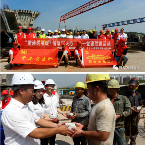 7月30上午,贛州市公路建設管理處黨支部、贛州發展集團城鎮公司黨支部、中建五局G105贛州經開區段改線工程PPP項目部黨支部聯合支部,共同前往G105贛州經開區段改線工程PPP項目部現場,開展“黨聯送溫暖·情暖軍人心”走訪慰問黨建活動,走訪慰問了退役軍人,給退役軍人送去西瓜、防暑藥品等慰問品。