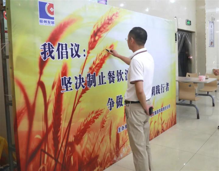 李賤貴一行檢查了食堂環(huán)境衛(wèi)生、食材使用、宣傳引導(dǎo)等情況,聽取了資產(chǎn)公司負(fù)責(zé)人關(guān)于“制止餐飲浪費(fèi)行為”的落實(shí)情況匯報(bào),并在“堅(jiān)決制止餐飲浪費(fèi)行為 爭(zhēng)做新時(shí)代文明踐行者”倡議活動(dòng)宣傳墻上簽名,帶頭倡導(dǎo)厲行節(jié)約、反對(duì)浪費(fèi)。