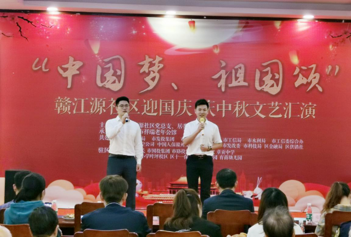 為豐富社區(qū)文化生活,弘揚(yáng)傳統(tǒng)文化,值此中秋、國慶佳節(jié)來臨之際,9月27日上午,由贛州集團(tuán)結(jié)對共建社區(qū)——贛江源社區(qū)主辦的“迎國慶 慶中秋”文藝匯演活動在贛州市祥瑞老年公寓舉行,集團(tuán)旗下融資租賃公司青年志愿者參加了演出。