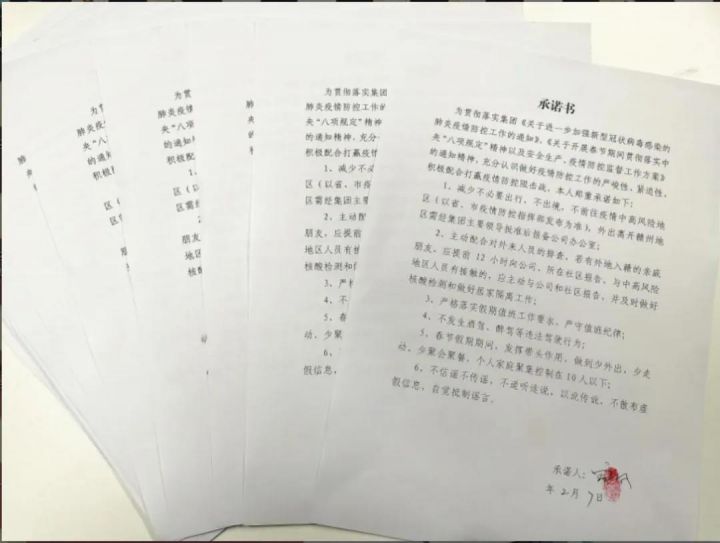 全體員工鄭重承諾:嚴格遵守和落實上級規定的疫情防控措施,積極配合做好排查工作,減少不必要出行,不出境,不前往疫情中高風險地區;黨員干部發揮帶頭作用,做到少外出、少走動、少聚會聚餐,個人家庭聚集控制在10人以下;積極參與疫情防控的正面宣傳,做到不信謠、不傳謠;春節期間嚴格落實假期值班工作要求,不發生酒駕、醉駕等違法駕駛行為。