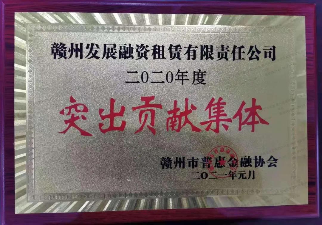贛州發展集團旗下融資租賃公司榮獲贛州市普惠金融協會“2020年度突出貢獻集體”榮譽稱號