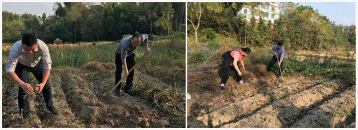 李賤貴與扶貧干部來到田坎地頭和貧困戶一起勞動,挖紅薯、挑水澆菜,他說,自己也是農家子弟,以前也經常干農活,說著就輪起鋤頭,說干就干,邊干農活邊跟鄉、村干部討論村里產業發展事宜。