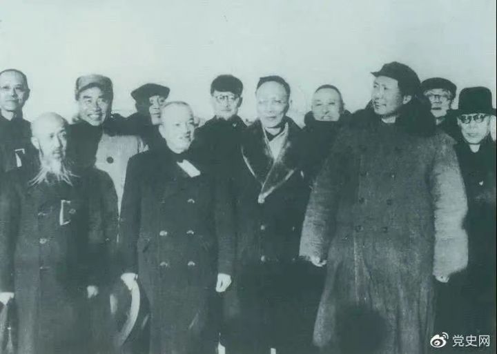 1949年3月,各界人士代表在北京西苑機場同毛澤東、朱德等留影。
