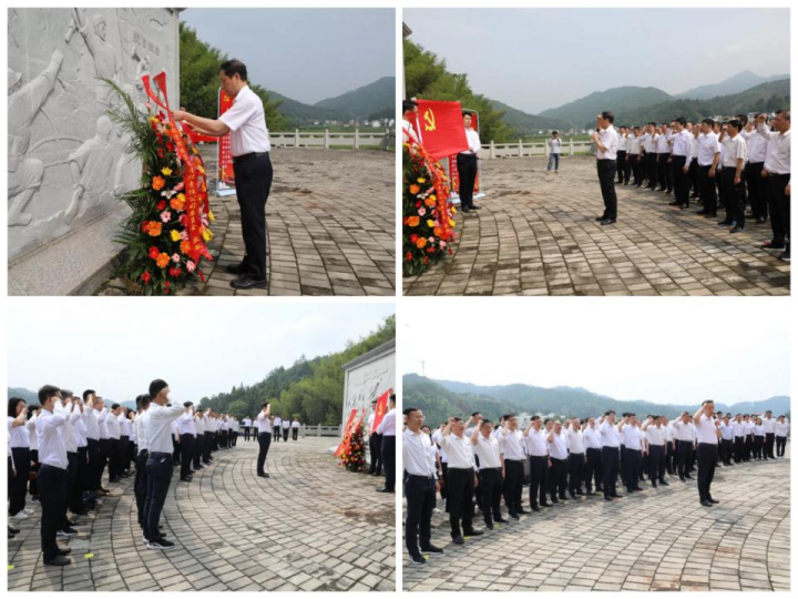 在信豐縣油山革命烈士陵園烈士紀(jì)念碑前,黨員干部們向革命先烈敬獻(xiàn)花圈,列隊(duì)整齊向革命先烈默哀。在紀(jì)念碑前,全體黨員干部舉起右手,握指成拳,莊嚴(yán)宣誓,重溫入黨誓詞,以擲地有聲的承諾表達(dá)初心不渝。通過祭奠活動(dòng),全體黨員干部的心靈得到了洗禮,以更加嚴(yán)謹(jǐn)?shù)膽B(tài)度和更加高昂的熱情投身集團(tuán)事業(yè)中。