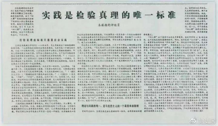 圖為《光明日報》以特約評論員的名義公開發(fā)表《實踐是檢驗真理的唯一標準》一文。