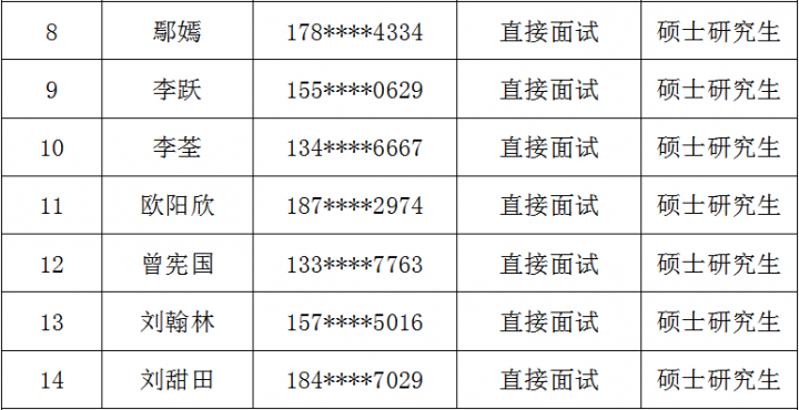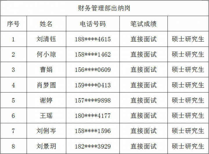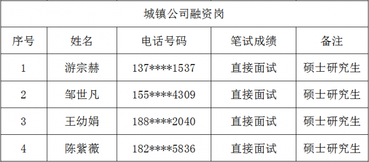 根據(jù)《贛州發(fā)展投資控股集團(tuán)應(yīng)屆畢業(yè)生招聘公告》規(guī)定的程序,經(jīng)簡歷初審、資格審查、筆試環(huán)節(jié),根據(jù)《招聘公告》,筆試成績合格線為60分,未達(dá)到60分的,不可進(jìn)入面試;碩士研究生免筆試,直接進(jìn)入面試。現(xiàn)將參加面試人員名單公告如下:(同時(shí)公布面試有關(guān)事項(xiàng)):