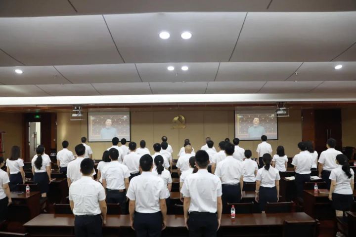 7月1日上午8時,贛州發展集團組織全體黨員干部職工集中收看慶祝中國共產黨成立100周年大會直播盛況。集團總部機關全體人員在集團21樓會議室觀看了大會直播,與此同時,集團黨委所屬各黨支部分別集中組織全體黨員干部職工觀看了大會直播,認真聆聽習近平總書記的重要講話。