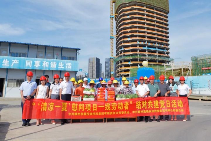 為深入開展黨史學習教育“我為群眾辦實事”實踐活動,落實國有企業與非公經濟黨組織黨建結對共建工作要求,近日,贛州發展集團黨委聯合黨建結對共建單位——嘉福投資控股集團黨委,共同組織黨員深入嘉福集團旗下各建設項目開展“‘清涼一夏’慰問項目一線勞動者”黨建共建主題黨日活動。