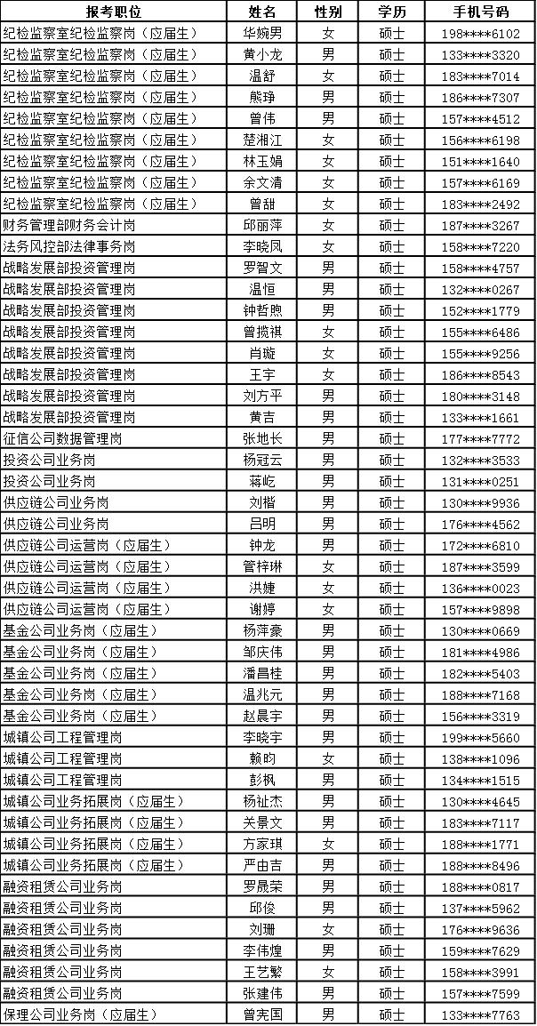 贛州發(fā)展投資控股集團(tuán)公開招聘入圍面試人員名單公示