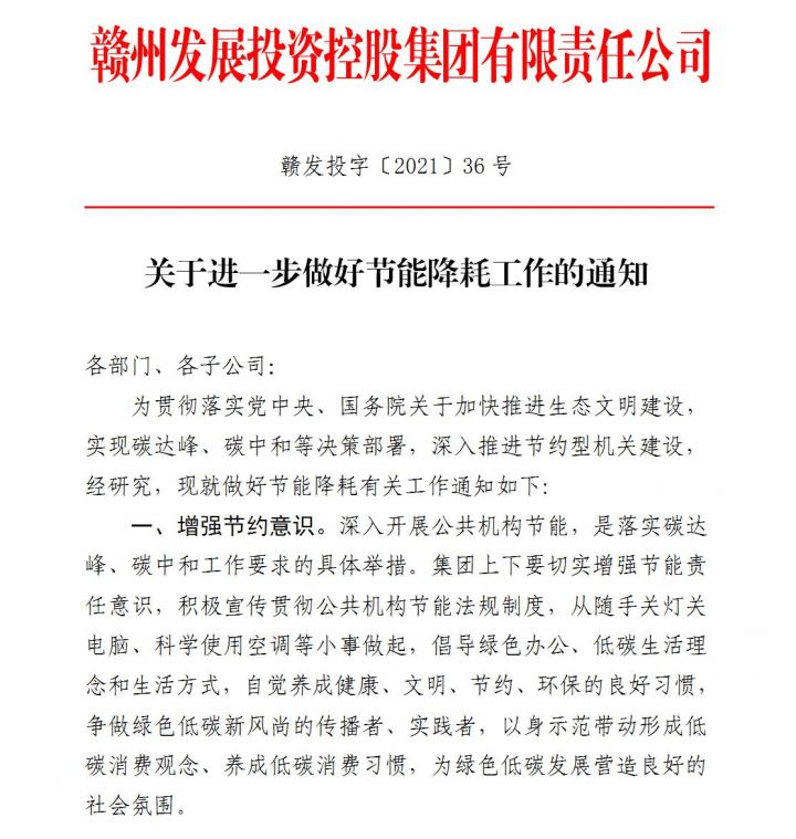贛州發展集團以節能減排宣傳周為契機,推動集團職工踐行“節能低碳,綠色發展”理念。為助力實現碳達峰、碳中和目標貢獻力量。集團節能減排活動將持續推進!