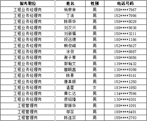 一、 面試人員名單公示