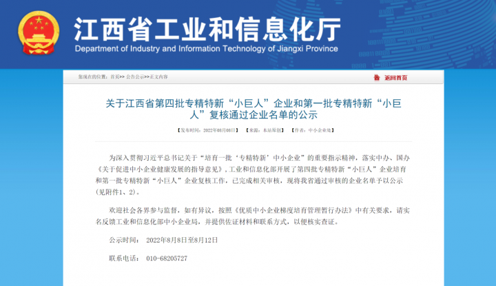 贛州發(fā)展集團(tuán)旗下融資租賃公司投資的2家企業(yè)入選第四批專精特新“小巨人”企業(yè)名單