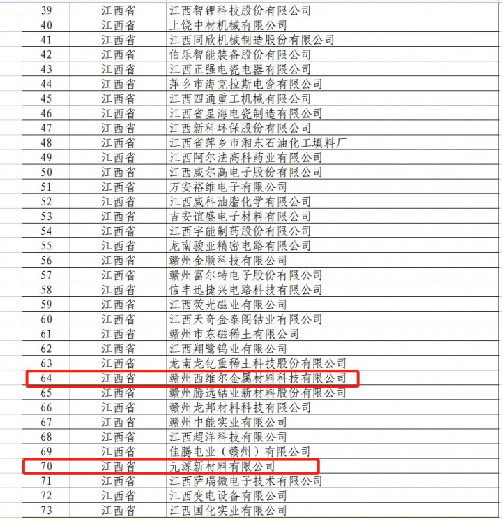 近日,江西省工業(yè)和信息化廳公示了我省經(jīng)工業(yè)和信息化部審核通過的第四批專精特新“小巨人”企業(yè)名單,贛州共有16家企業(yè)入選,其中,贛州發(fā)展集團(tuán)旗下租賃公司多年支持的贛州西維爾金屬材料科技有限公司和元源新材料有限公司成功入選。