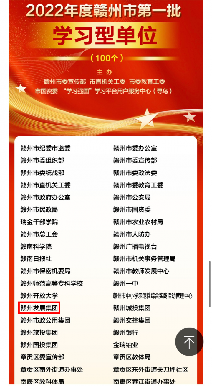 喜訊!贛州發展集團獲評2022年度贛州市第一批“學習型單位”