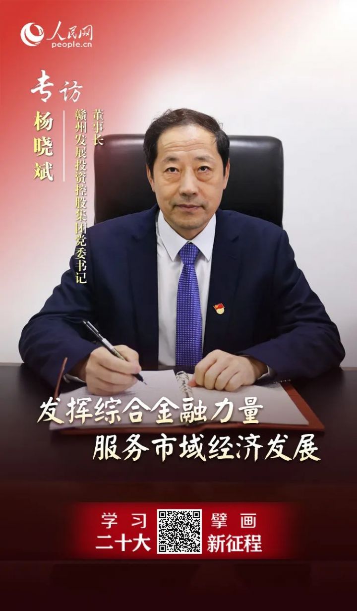 【編者按】為深入學習宣傳貫徹黨的二十大精神,把思想統一到黨的二十大精神上來,把力量凝聚到黨的二十大確定的各項任務上來,人民網江西頻道聯合江西省委網信辦網絡新聞傳播和評論處推出“學習二十大,擘畫新征程”系列訪談節目,聚焦江西各地各部門如何精心組織“學”,廣泛深入“講”,結合實際“干”,推動黨的二十大精神落實到發展的各方面,以踔厲奮發、勇毅前行姿態奮進新征程。近日,贛州發展投資控股集團黨委書記、董事長楊曉斌接受了人民網的專訪,以下為訪談實錄: