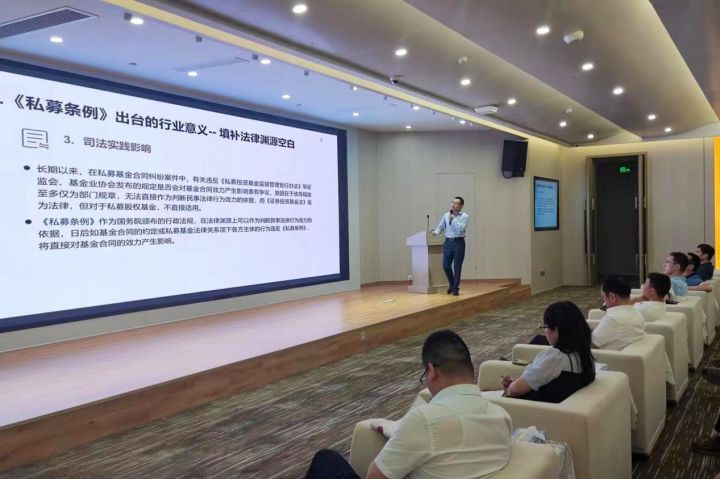 本次培訓(xùn)邀請了北京金杜(深圳)律師事務(wù)所合伙人胡耀華律師、林嘉律師針對《私募投資基金業(yè)務(wù)法律及合規(guī)》進(jìn)行了專題授課。胡耀華律師對7月9日公布的《私募投資基金監(jiān)督管理條例》進(jìn)行了詳細(xì)解讀,重點講解了私募股權(quán)投資基金的投資范圍、限制及相應(yīng)的風(fēng)險控制措施,并結(jié)合監(jiān)管要求對國有企業(yè)持有私募投資基金資金募集、投資運作、負(fù)面清單、退出機(jī)制等進(jìn)行了專業(yè)講解。