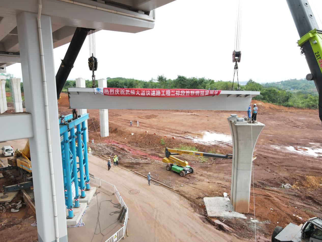 此次首聯鋼箱梁的成功架設,有力地推進了武陵大道快速路項目施工進度,為早日全線貫通通車的施工目標邁出了重要一步。