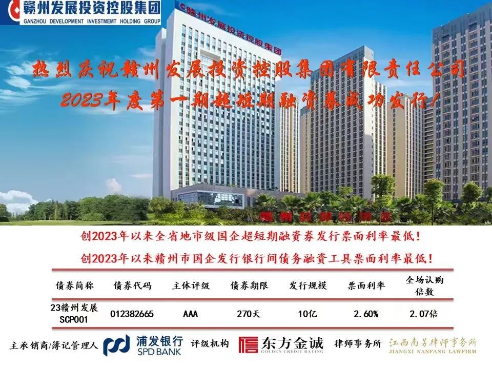 贛州發展投資控股集團成功發行2023年度第一期超短期融資債券