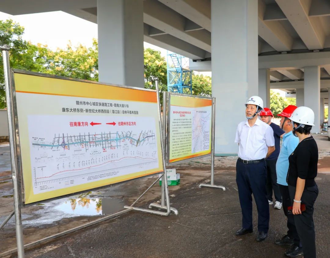 在中秋、國慶“雙節”來臨之際,9月27日,贛州發展集團黨委書記、董事長楊曉斌深入贛南大道快速路蓉江段項目調研安全生產、信訪維穩等工作,對節假日落實“重大項目不停工”有關要求進行了部署。他要求,要全力推動項目提速增效,奮力實現市委市政府交辦的年底高架主線的通車目標任務。