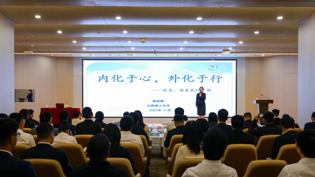 本次活動(dòng)邀請(qǐng)了江西理工大學(xué)文法學(xué)院公共文藝教研室主任黃麗娜進(jìn)行專題授課,以《內(nèi)化于心 外化于行》為題,從禮儀接待中的四心、四聲為切入點(diǎn),通過現(xiàn)場(chǎng)講解、示范互動(dòng)等形式,引導(dǎo)員工們思考討論,并通過“理論+現(xiàn)場(chǎng)演示”相結(jié)合的方式,結(jié)合日常工作中的實(shí)際場(chǎng)景,深入淺出地講解了企業(yè)員工在規(guī)范著裝、商務(wù)接待、儀表儀容、語言溝通等方面的注意要點(diǎn)。