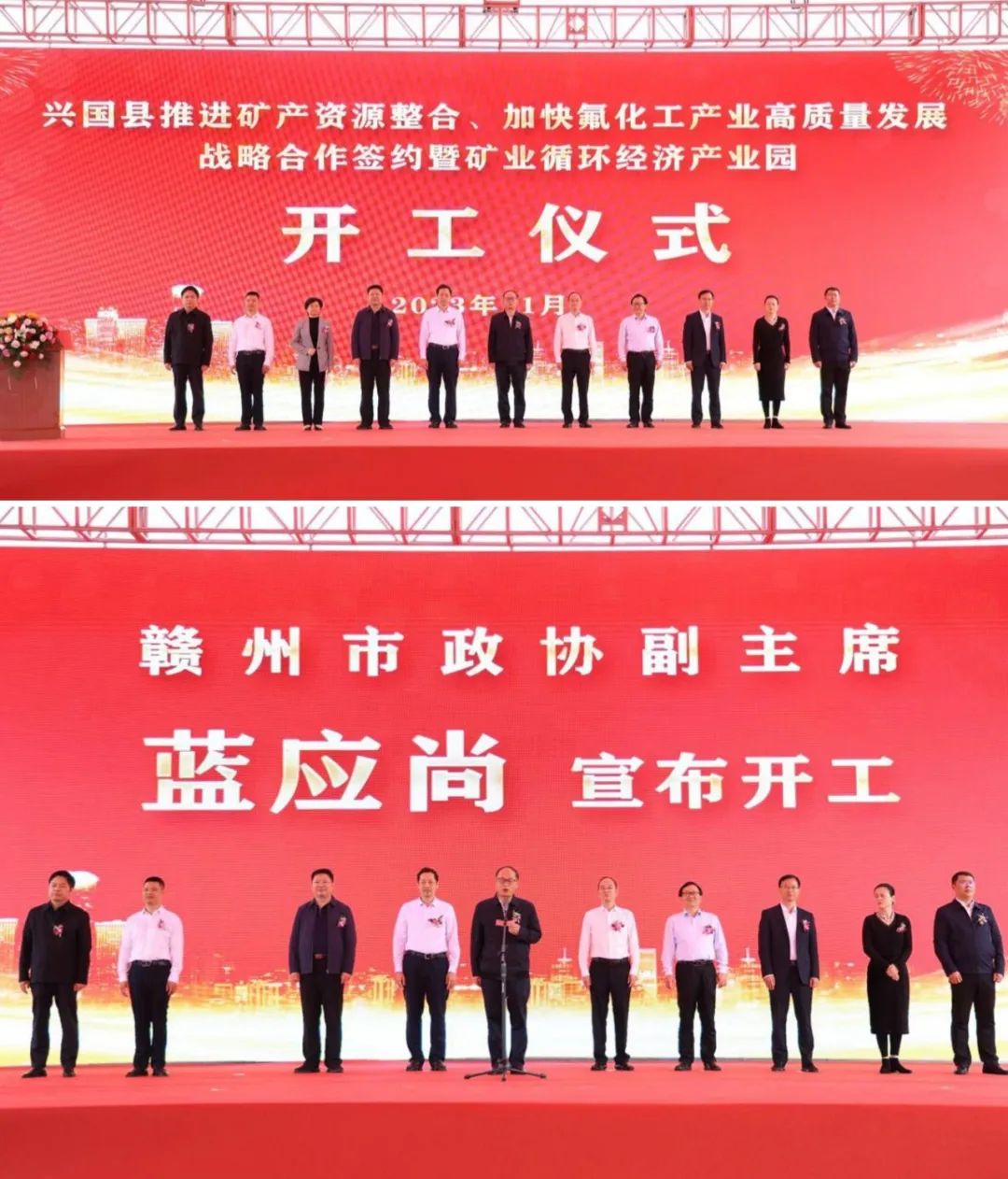 在陣陣禮炮聲中,作為本次戰略合作重點項目之一的興國縣礦業循環經濟產業園正式開工。投資建設興國礦業循環經濟產業園,是贛州發展集團深入貫徹市委“三大戰略、八大行動”,推進落實《贛州市氟鹽新材料產業高質量發展三年行動方案(2023-2025年)》的重要舉措,是開啟贛州發展集團與興國縣人民政府全面戰略合作的首個項目,是市縣合作推動螢石資源整合和產業發展的示范工程。