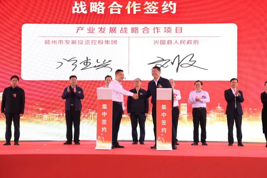 廖生興代表贛州發展集團與興國縣人民政府簽署戰略合作協議,贛州工控集團投資建設的礦業循環經濟產業園簽約落地。