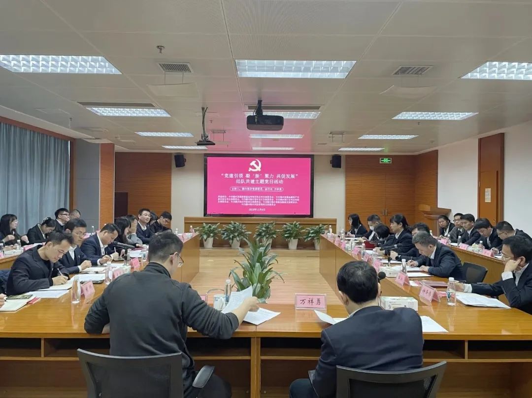 為深入開展學習貫徹習近平新時代中國特色社會主義思想主題教育,推動黨建與經營深入融合,12月6日,贛州發展集團下屬贛州發展基金公司黨支部、贛州發展金交征信公司黨支部聯合贛州銀行下屬青年支行黨支部、公司業務部黨支部、科技部黨支部、普惠金融部黨支部、風險管理部黨支部等5個支部,在贛州銀行金融大廈會議室開展以“黨建引領 凝‘新’聚力 共促發展”為主題的黨建聯建共建主題黨日活動。贛州銀行黨委委員、副行長萬祥勇主持活動,贛州發展集團副總經理孟佳聰出席活動,各支部書記、黨員、入黨積極分子共計36人參加活動。