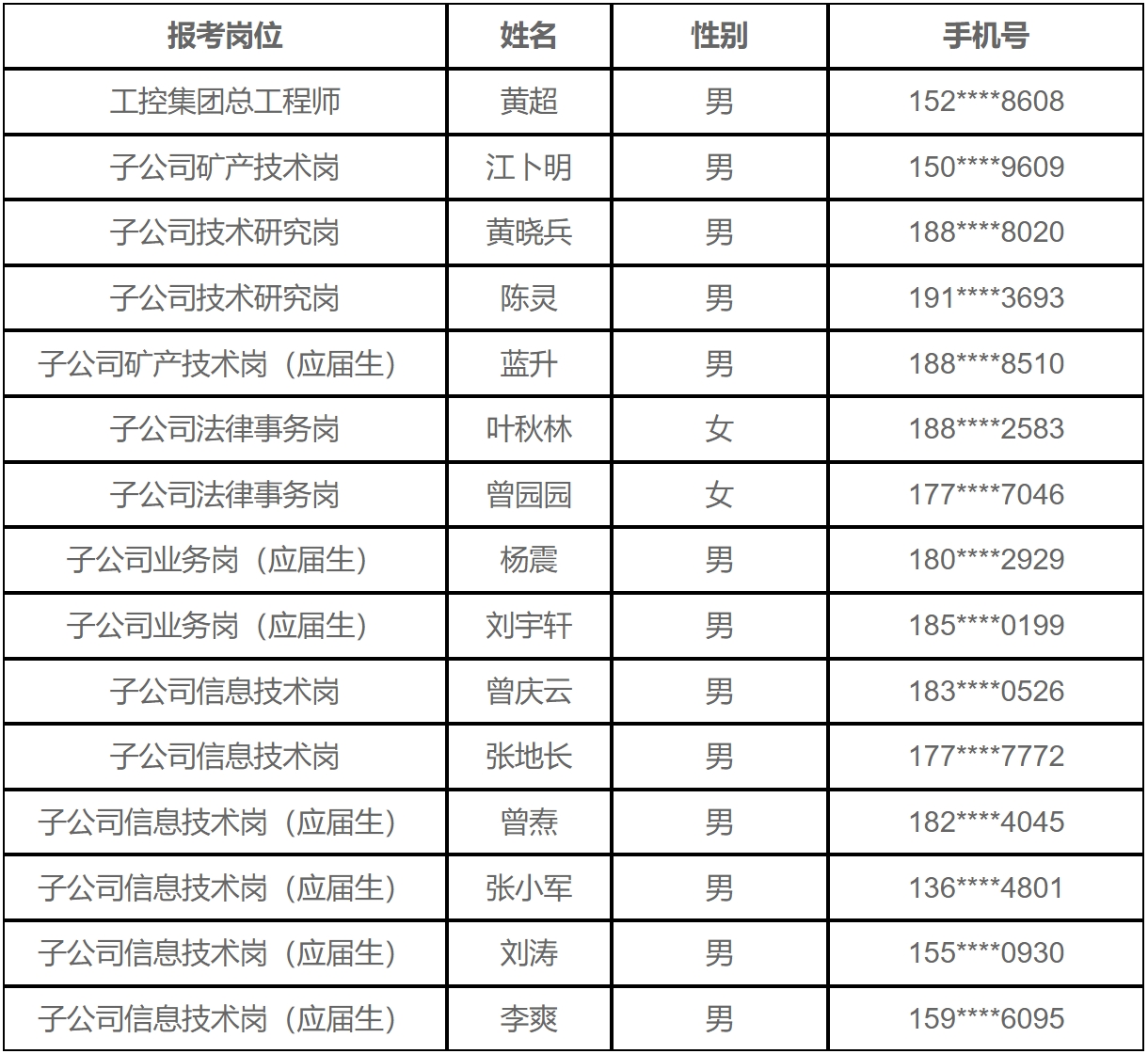 根據《贛州發展投資控股集團公開招聘公告》有關規定,通過公開報名、簡歷初審、資格審查、面試(兩輪面試)、體檢與背調等程序,經研究,確定以下同志為擬錄用人員,現予以公示: