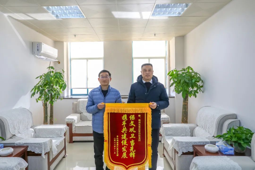 12月25日,贛州發展集團黨委副書記黃強雙手接過贛江源社區黨委送來的錦旗,“保文鞏衛當先鋒,攜手共建促發展”是集團和社區在創文創衛共建工作方面的生動寫照。