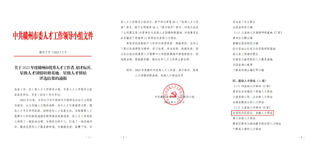 喜訊!總部經(jīng)濟(jì)區(qū)國企、金融人才驛站成功獲評“贛州市2023年度三星級人才驛站
