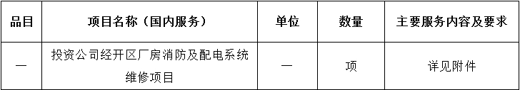 項目名稱:投資公司經開區廠房消防及配電系統維修項目