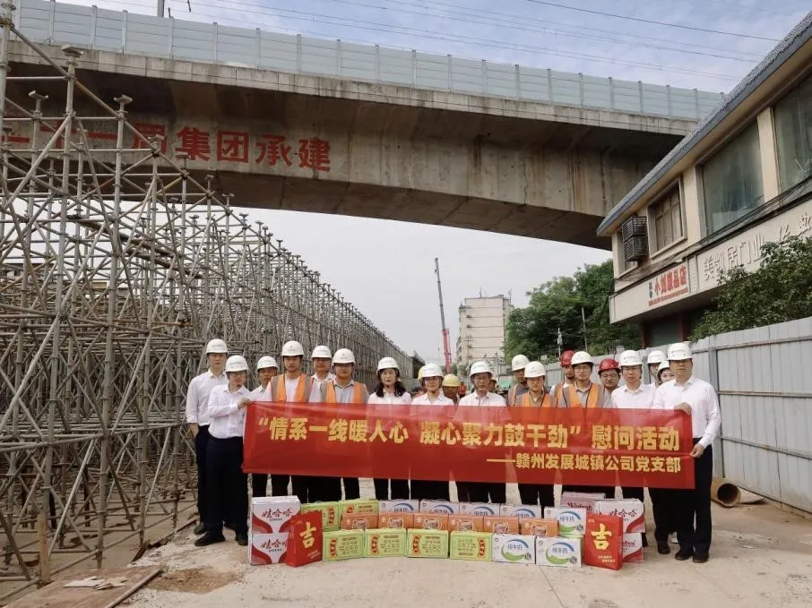 贛州發展城鎮公司黨支部組織黨員慰問東江源大道快速化改造工程涉鐵段一線建設者
