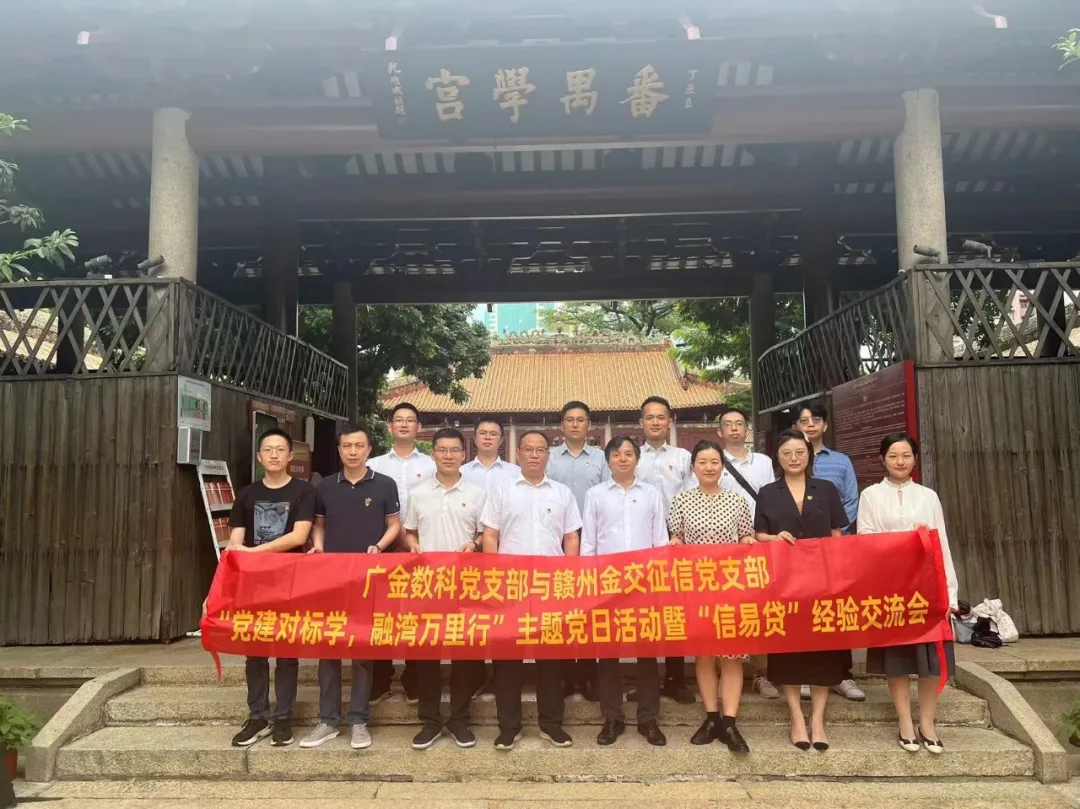 為貫徹落實集團黨委關于黨建對標行動的部署要求,6月28日,贛州發展集團黨委委員、副總經理陳泉淞帶領金交征信公司黨支部前往廣州金控集團黨委旗下廣金數科有限公司黨支部開展“黨建對標學,融灣萬里行”學習考察活動。